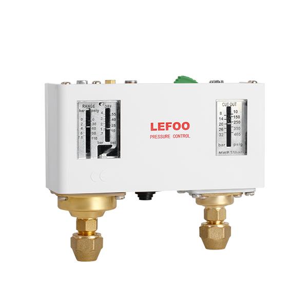 LF58系列雙壓力控制開(kāi)關(guān)通常用于控制制冷系統(tǒng)中壓縮機(jī)的壓力。該開(kāi)關(guān)適用于制冷劑外還可用于控制氣體、水和油壓力。內(nèi)部微動(dòng)開(kāi)關(guān)結(jié)構(gòu)確保開(kāi)關(guān)良好的性能。LF58系列能開(kāi)關(guān)同時(shí)控制高低兩檔壓力。開(kāi)關(guān)配有標(biāo)準(zhǔn)安裝支架。
