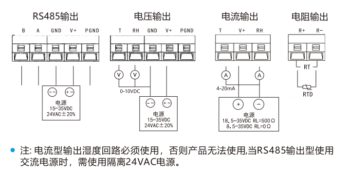 1.LFH101/102/103產(chǎn)品電流型由濕度回路供電,所以此回路必須使用,否則產(chǎn)品無(wú)法正常工作