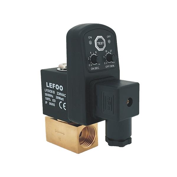 LFSV20-B電磁閥,是二通式常閉二位二通電磁閥。該閥利用線圈通電產生的電磁力來驅動閥芯運動,從而阻斷或流通管道中的介質,起到壓縮空氣冷凝水的定時自動排放目的。主要應用于過濾器、分離器、干燥機、儲氣罐、滴水腳等壓縮空氣系統部件,排放時間與間隔可根據不同需要進行調節。